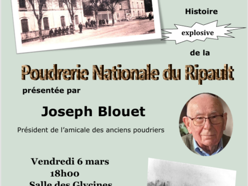 Lire la suite Atelier et animation, Culture Conférence "l'Histoire Explosive de la Poudrerie Nationale du Ripault" Proposé par A A P A Association des Amis du Patrimoine Artannais vendredi 06 mars Artannes-sur-Indre