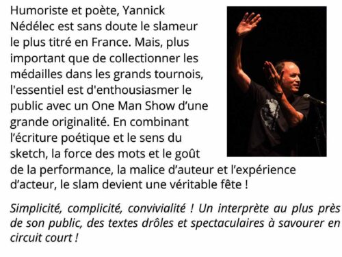 Lire la suite Art de rue - Art du cirque, Culture Spectacle de Slam avec Yannick Nédélec organisé par Les Wagons samedi 24 janvier Saint-Branchs