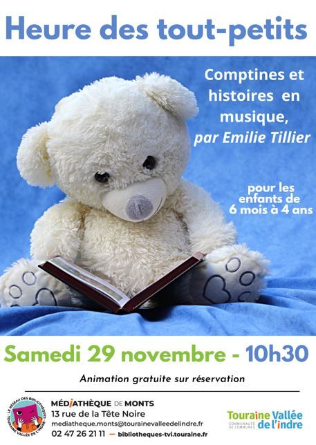 Gratuit, sur réservation à l’accueil de la médiathèque de Monts ou au 02 47 26 21 11