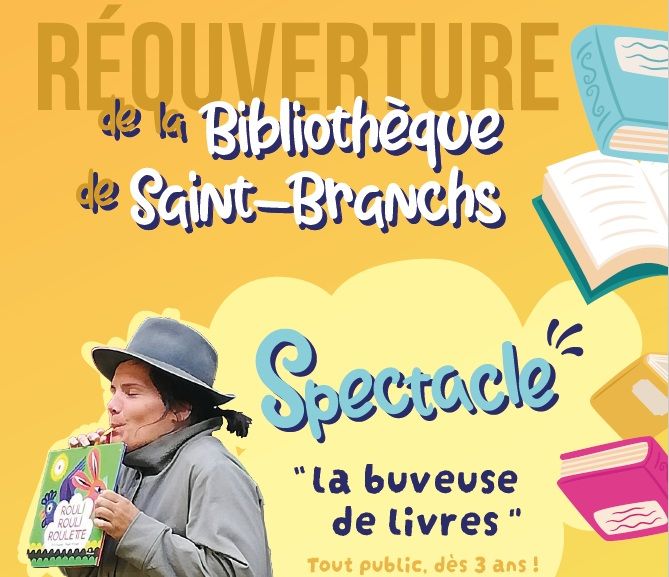 Pour le premier jour d’ouverture de la nouvelle bibliothèque de Saint-Branchs, venez à la rencontre de La Buveuse de Livres !